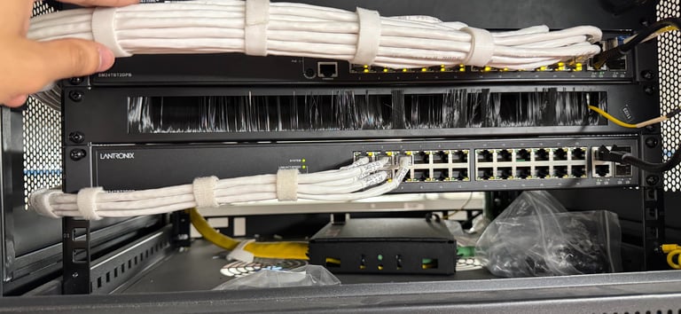 Helped the implementation of a POE lighting system at Mouser Electronics, utilizing a headend rack to connect multiple mini-IDFs located in the ceiling. Each mini-IDF contains two 24-port POE Lantronix switches connected to a VoltServer connection, providing DC POE directly from the headend. Each port supplies up to 90W of power, supporting two daisy-chained lights connected to a device node. The network spans approximately 48 IDFs and supports up to 3,000 device nodes, requiring a robust and sustainable network infrastructure to ensure seamless communication between all lights and devices.